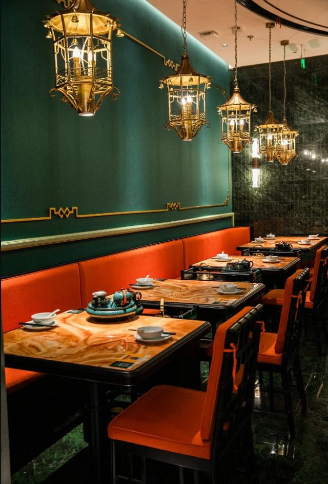 整个餐厅采用大胆的红绿配色,中式的牌匾悬挂在进门处,一走进来就给人一种“乱花渐欲迷人眼”的富贵感。而这种别致复古的装修风格,总会吸引各式打扮的小哥哥小姐姐前来拍照,体验粤式韵味的氛围,身着古典服饰的店员用一套港式泡茶流程和招呼语,让顾客一秒置身广州。
