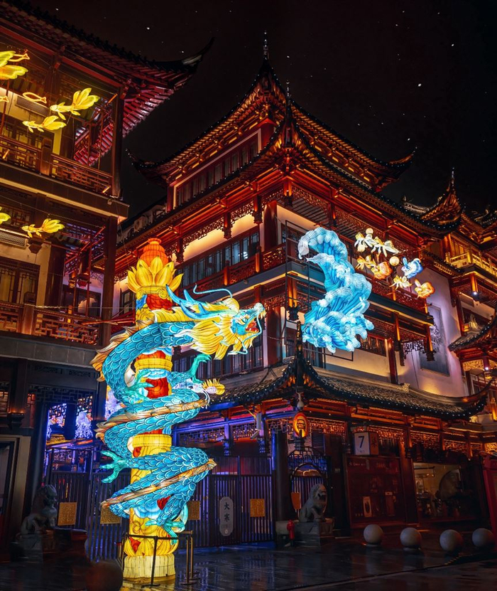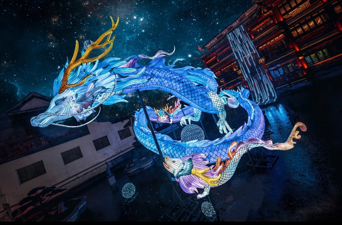 同时,位于辽宁沈阳盛京龙城和江苏如东复地上河印巷也在第二十九届豫园灯会举办期间点亮部分豫园灯会同系列灯组,中法两国四城以跨越时区与地域的流光溢彩,共同庆祝中国龙年新年的到来。