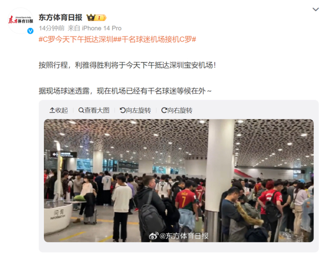 今天(1月21)下午,世界足球巨星C罗落地深圳。