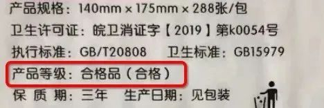 记者看了很多编号、原料都正常的纸巾,但等级却是“合格品”,这是纸巾等级中最差的。