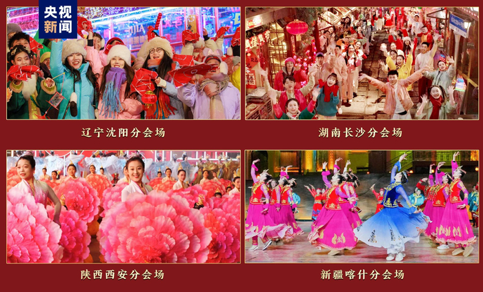 走近你,是一次家门口看春晚的别样体验。在中国工业博物馆的沈阳分会场,东北曲艺与当代风尚的创意碰撞,让受众在冰天雪地感受火一般的热情;长沙分会场选址于湘江与浏阳河交汇处的“三馆一厅”,用青春之歌赞颂“不夜星城”朝气蓬勃、敢为人先的昂扬风貌;陕西分会场的国潮表演将陕派说唱、创意水袖、鼓乐交响等多种艺术形式相融合,大唐不夜城再现诗意满长安的恢弘景象;位于喀什古城内的喀什分会场,各族群众欢歌笑语,带来器乐展示、情景演绎等表演,共同奏响中华民族一家亲的绚丽乐章。第二次彩排中,分会场各具特色的舞台设计和节目创排展现出当地浓郁的风土人情和热烈的新春氛围,让五湖四海的欢乐人群共赴美好之约。