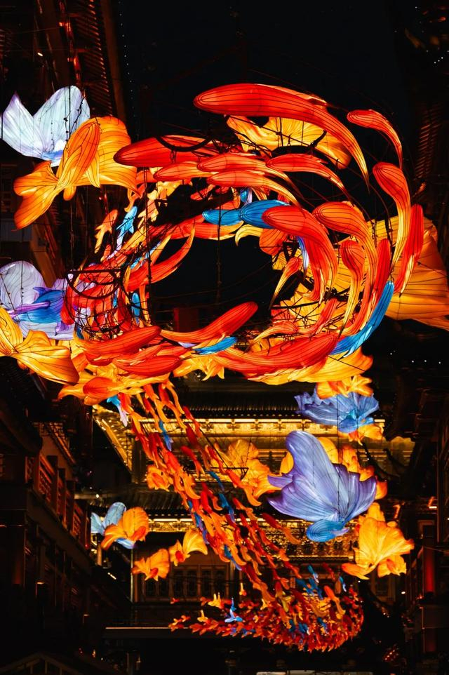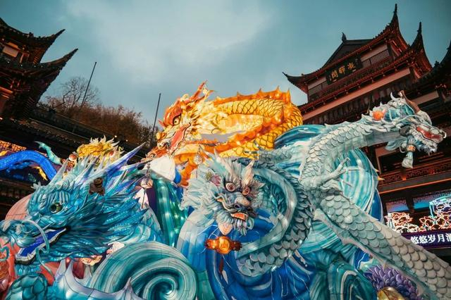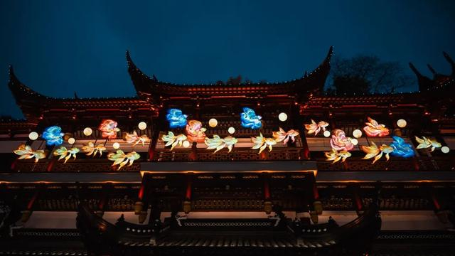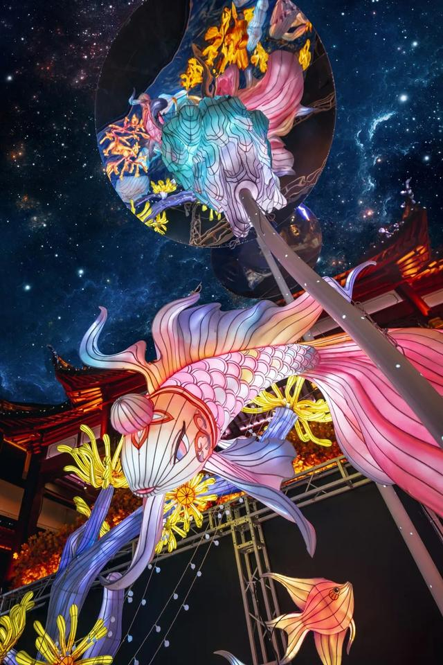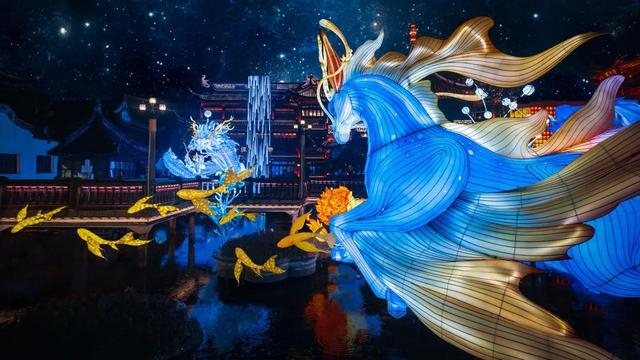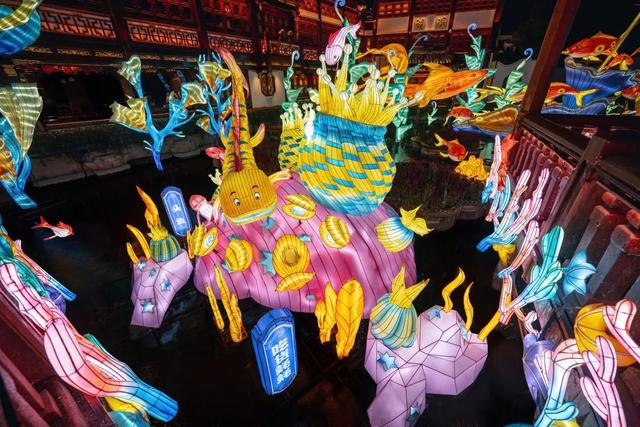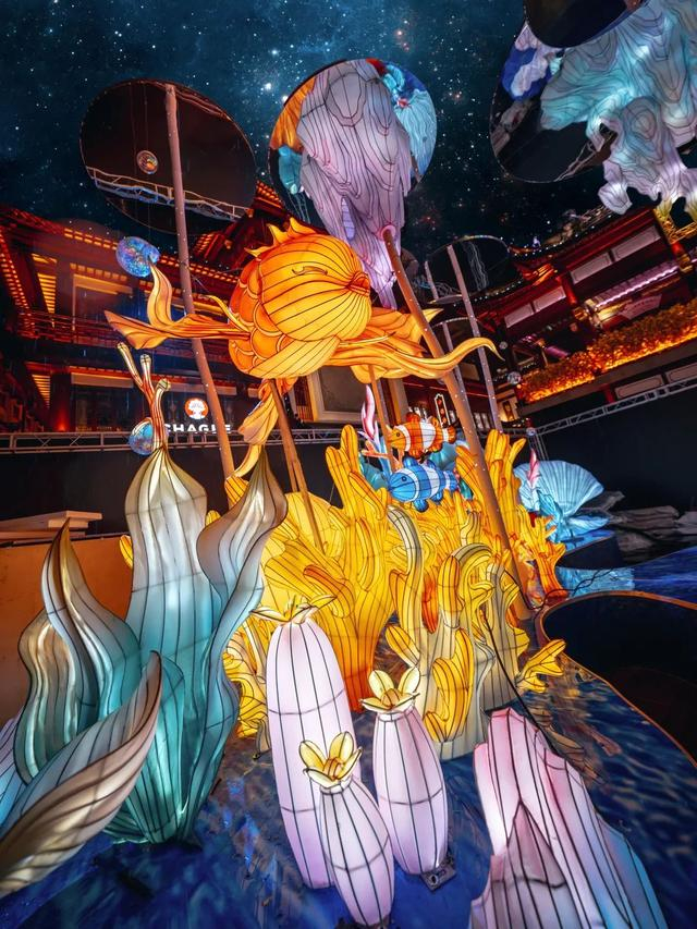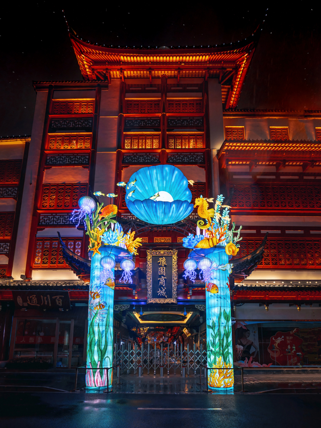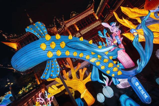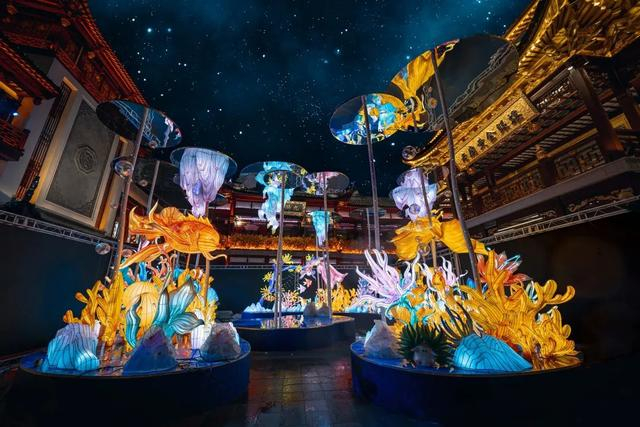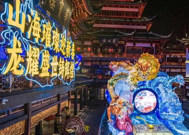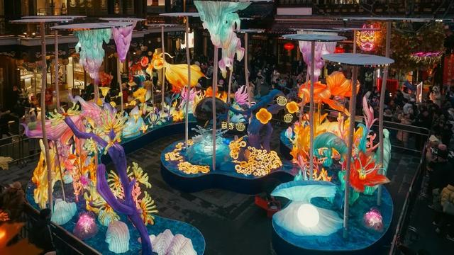 今年的豫园灯会有四大门头、五大场景打造深海与河图之象,呈现生肖龙与海洋动植物交织的奇境。