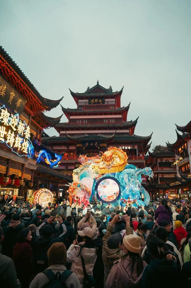 同时,位于辽宁沈阳盛京龙城和江苏如东复地上河印巷也在第二十九届豫园灯会举办期间点亮部分豫园灯会同系列灯组,中法两国四城以跨越时区与地域的流光溢彩,共同庆祝中国龙年新年的到来。