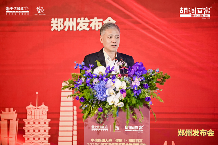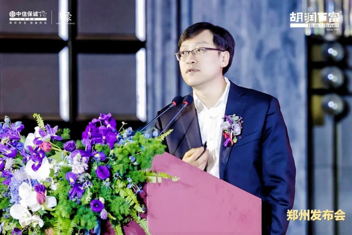 中信保诚人寿河南省分公司负责人张耿发表致辞。他表示,在经济回升向好的复苏趋势下,我们需要趁势而为,科学决策。正如此次再次携手胡润百富,可以让我们从中洞见未来蕴含的发展机遇。近年来,中信保诚人寿河南省分公司持续聚焦和深耕高净值市场,通过持续探索创新,为高净值客户个人、家庭端及企业端全方位赋能,打造共生共享生态圈。未来,中信保诚人寿河南省分公司将继续以发挥保险的重要风险补偿和保值增值作用为使命,形成内涵丰富的一站式企业及个人家庭服务体系,不断满足中国高净值人群日益增长的综合财富管理需求,持续推动河南保险业高质量发展。