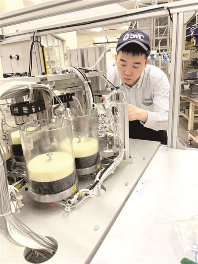 2021年上半年,张子康提议将机器人引进气缸组装生产线。“此前从没有人做过这项工作,所以无从参考。”成为SMC气缸组装工艺中“第一个吃螃蟹的人”,张子康身上的压力倍增,更不敢掉以轻心,哪怕只是自动机械手与密封圈一次小小的“合作”,他和同事们都要演练数十次,“这个环节出错意味着接下来的所有程序都要停下来。”经过半个月夜以继日的不断试验,张子康和他的团队成功实现“机器人与密封圈的对话”, SMC的气缸组装车间自动化生产线上终于有了工业机器人的加入。