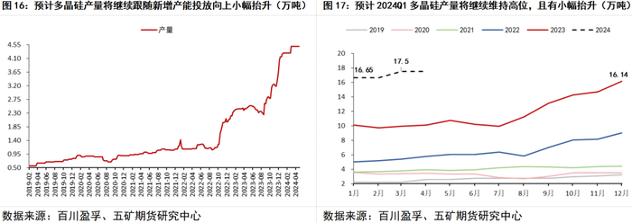 综合来看,我们预计2024Q1多晶硅产量仍将维持在高位,且存在小幅增量空间,预计产量维持在16.5-17.5万吨区间;