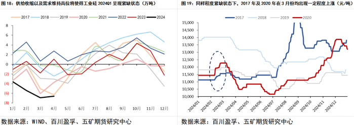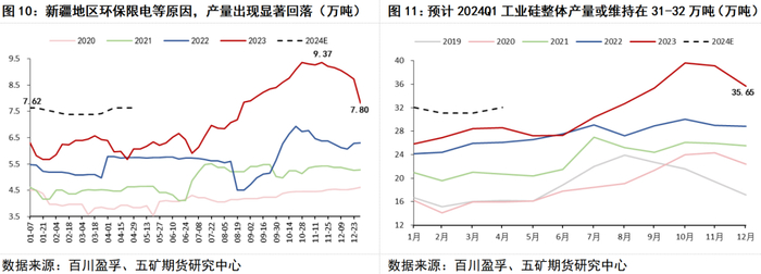 在新疆地区产能维持限制状态前提下,结合需求侧的情况,我们预计工业硅整体供求结构在2024Q1将呈现阶段性紧缺状态(存在季节性因素)。