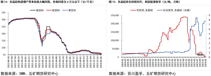 展望2024Q1,在新疆地区产能维持限制状态前提下,我们预计产能快速投放及仍具备的盈利空间将支撑多晶硅产量维持高位,工业硅整体供求结构在接下来的枯水期内将呈现阶段性紧缺状态(存在季节性因素)。