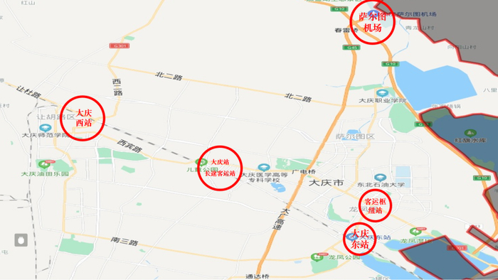 1月26日春运开始后,预计离、返庆旅客出行增多,主要时间集中在春运初期、春节假期前及春运结束。大庆市的萨尔图机场、各火车站、客运枢纽等客运场所也将会增加旅途班次,每日客流量会大幅度提升,接送乘客车辆也有所增多,城区交通枢纽周边道路通行压力增大,各县区的长途客运站、火车站周边路段易出现缓行现象。