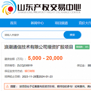 山东产权交易中心信息显示,浪潮集团旗下两家权属企业增资扩股项目正在进行中,其中浪潮工创(山东)供应链科技有限公司(简称“浪潮工创供应链”)拟融资金额为1000万-4000万元,浪潮通信技术有限公司(简称“浪潮通信”)拟融资金额为5000万-20000万元。