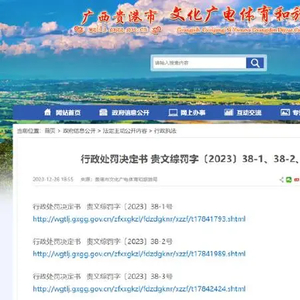 近日,广西贵港市文化广电体育和旅游局网站(以下简称“贵港市文旅局”)公开了贵文综罚字〔2023〕38-1、38-2、38-3号这三份行政处罚决定书(以下简称“决定书”)。决定书中指出,2023年9月8日,贵港市文旅局接到贵港市公安局港北分局移送非法出版物案件,要求对案件涉案公司运营非法出版物的行为,追究其法律责任。、
