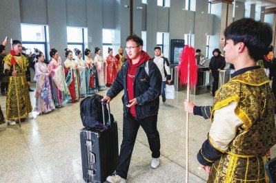 1月12日,河南洛阳龙门站别样的“接驾”视频在网上爆火。视频中,多名身着“金甲”、威武帅气的“武士”列队“接驾”,齐声高呼“神都洛阳恭迎公主殿下回城”,并派发旅游宣传册,帮游客运送行李。