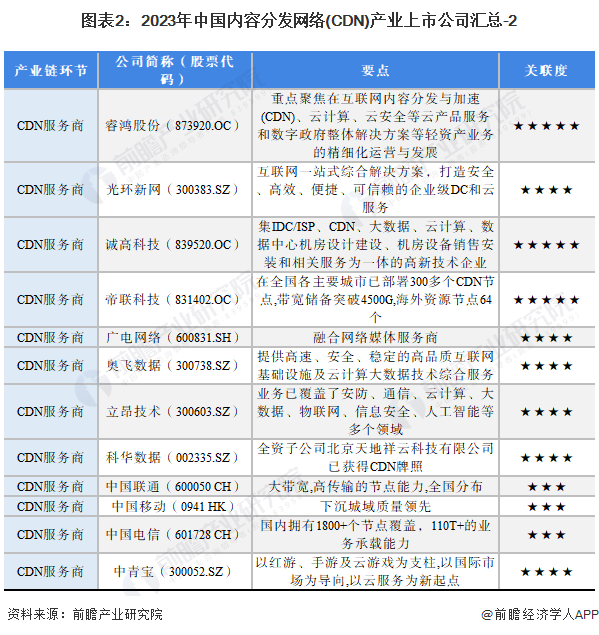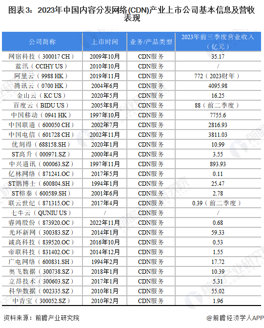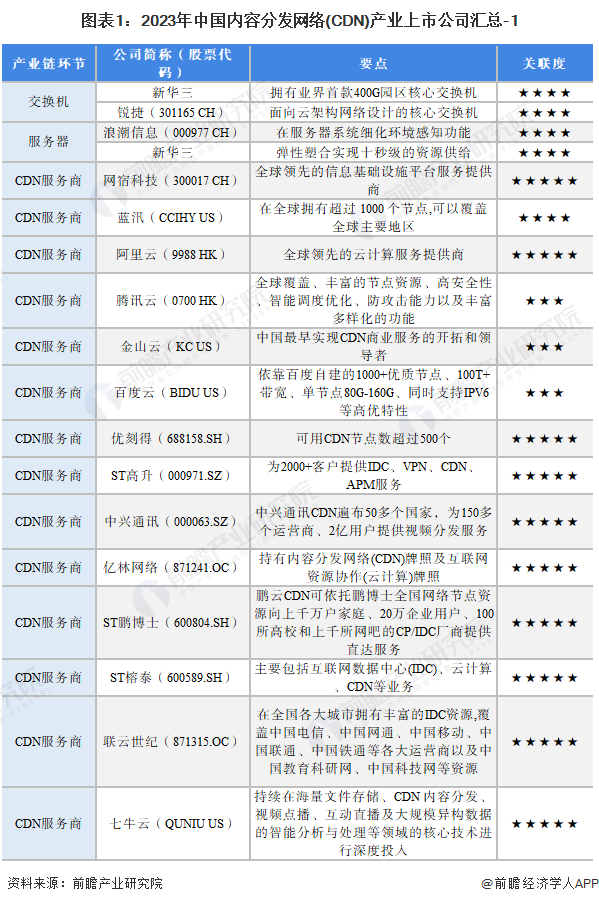 1、内容分发网络(CDN)产业上市公司汇总