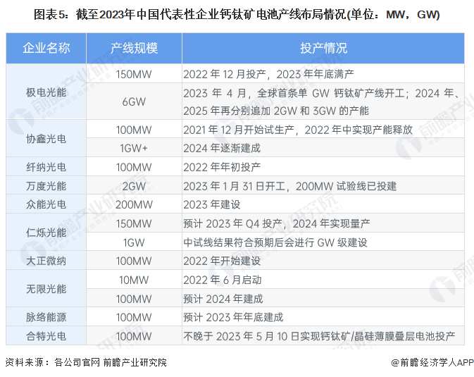 钙钛矿电池代表性企业产线布局情况