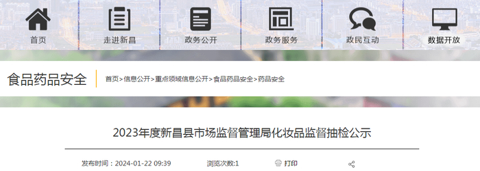 2023年度新昌县市场监督管理局化妆品监督抽检公示