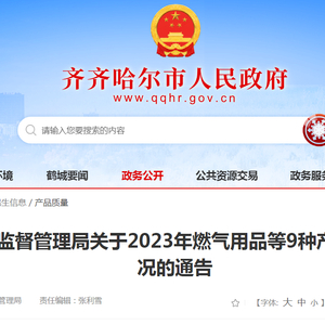 齐齐哈尔市市场监督管理局关于2023年燃气用品等9种产品质量监督抽查情况的通告