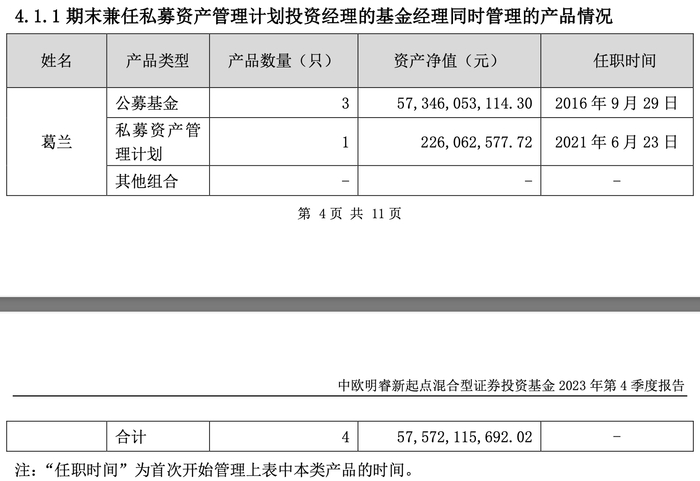 2024年1月22日,中欧基金披露旗下基金经理葛兰在管的3只公募基金2023年四季报,其持仓情况也随之浮出水面。