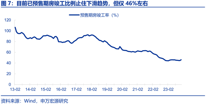 “三大工程”理论上或可对冲投资总量数据下滑,但无法解决结构上期房交付风险形成的需求侧堵点问题。“三大工程”逻辑上是通过推动新项目投资来对冲地产投资总量数据的下行压力,但无助于拉动老项目投资,后者衍生出的期房交付风险才是目前需求侧堵点、困扰政策效果的核心矛盾。因此,即使今年“三大工程”投资从数据上稳住了地产投资下行压力,但结构上期房竣工率偏低的问题并不会得到实质性的解决,仍会约束需求释放。