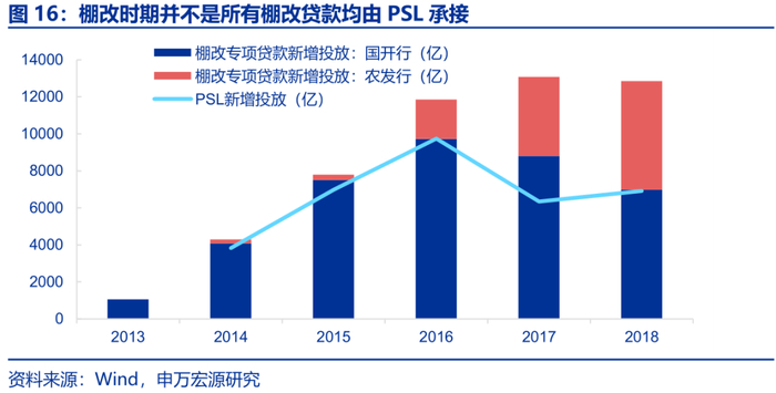 12014PSL工具创设,初期主要支持棚改,且投放对象为国开行。抵押补充贷款创设于20144月,初始目的是为开发性金融支持棚户区改造提供长期稳定、成本适当的资金额度,投放对象为国家开发银行。