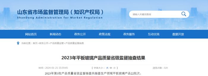 【山东】2023年平板玻璃产品质量省级监督抽查结果