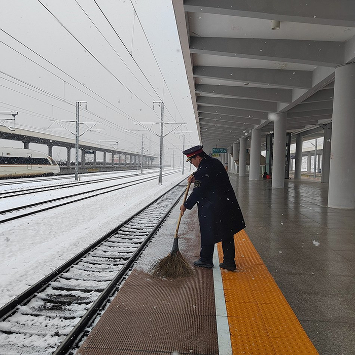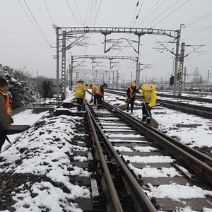 面对雨雪,金华车务段在管内客运车站出动道岔清扫、客运扫雪人员近200人,铺设防滑垫近200块。杭州电务段第一时间启动应急扫雪预案,截至记者发稿前,现场投入扫雪除冰工作人员近50人,对8个站场、110组道岔进行扫雪除冰作业,全力保障了线路畅通。杭州工务段在落雪初期,迅速组织人员对管内区段设备设施进行巡视检查,观测线路覆冰情况,共计出动500余人次,行程覆盖管辖区段内的600余公里线路。