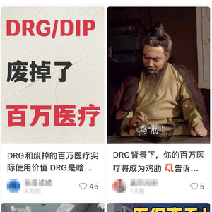 社交平台上部分关于DRG对百万医疗险影响的讨论截图