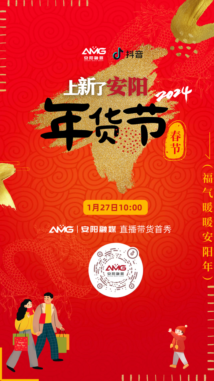为了迎接龙年春节,安阳融媒将携手抖音官方于2024年1月27日(农历腊月十七)开展“上新了安阳”抖音年货节大场直播活动。