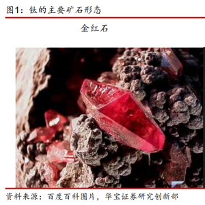 钛资源储量在地壳中含量排名第九位,目前主要以化合物的形式赋存在矿物钛铁矿( FeTiO 3 )和金红石( TiO 2 ) 中,此外还赋存在一些潜在可利用价值矿物(比如锐钛矿、板钛矿、白钛石)中。与钛铁矿相比,金红石独特的分子特性使其具有较大的稳定性和相对密度(纯度更高) ,同时具有较高的折射率和介电常数以及较低的热传导性。