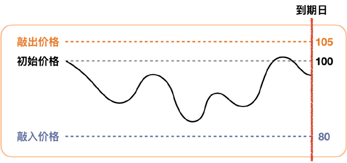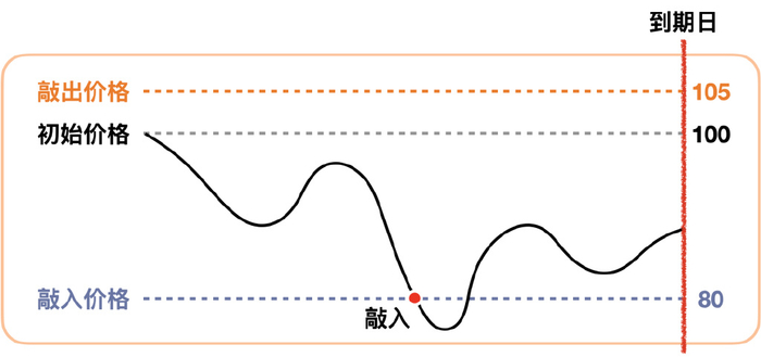 跌到敲入价格,也就是80元,并且到期之前没有涨回到敲出价格。