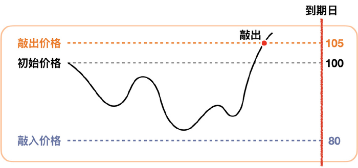 例如上涨到105元,发生敲出,合约结束。