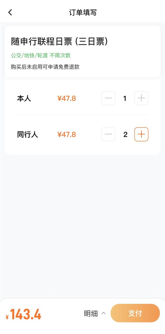 *联程日票一日票、三日票、七日票不可同时启用;本人联程日票(一日票/三日票/七日票)和同行人联程日票(一日票/三日票/七日票)同时启用同时失效,不支持不同时间分别启用。更多详情请见购买须知哦。