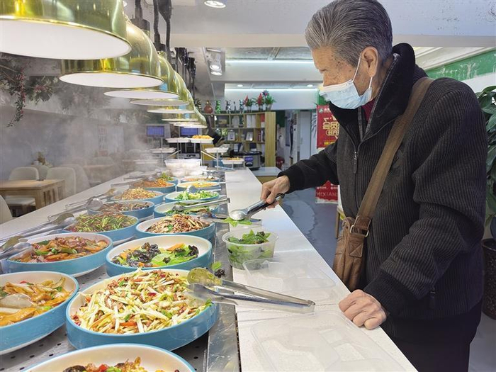 一位老人在“米先生”店内选餐