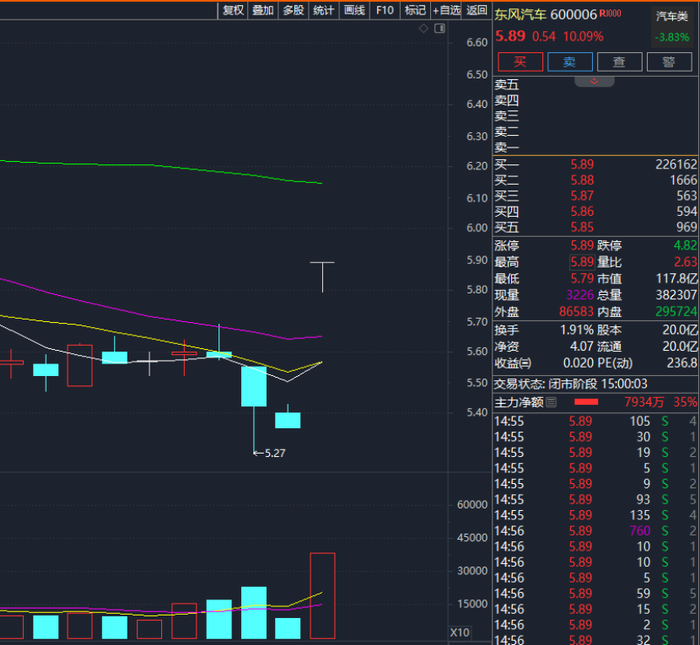 另外,今日,在大盘调整的背景下,东风汽车(600006)逆市涨停,截至收盘,该股封单仍超过22万手。就在当天上午,华为发布消息称,近日,华为与东风汽车集团旗下的高端智慧电动汽车品牌岚图正式签署战略合作协议。