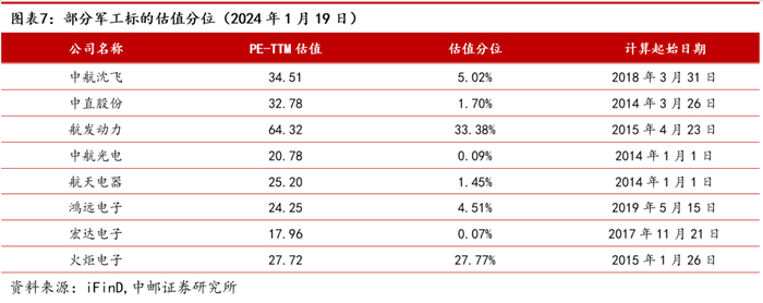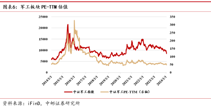 2.3 军工板块及重点标的估值水平