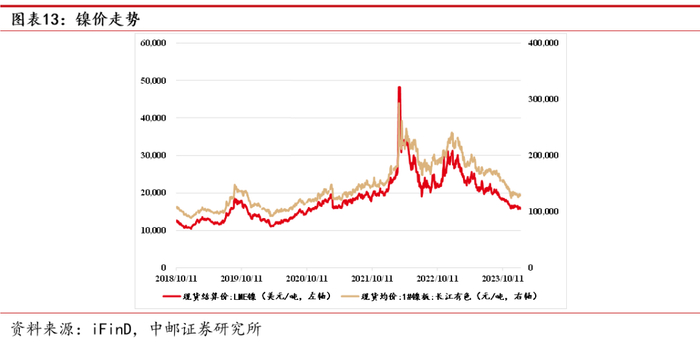 镍价跟踪:1月19日,伦敦金属交易所金属镍现货结算价格15935美元/吨,较上周末价格下跌0.87%;长江有色市场镍板现货均价130400元/吨,较上周末价格下跌0.84%。