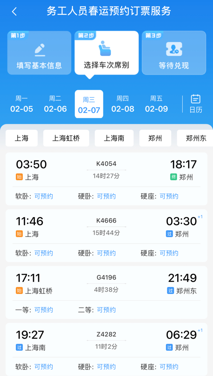 可以预约的车次和席别