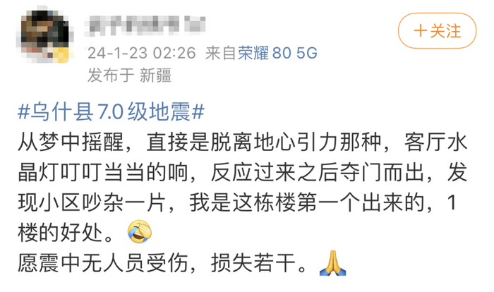 截至1月23日6时,距离震中26公里的克孜勒苏柯尔克孜自治州阿合奇县库兰萨日克乡3人受伤,已及时送往医院救治,乌什县暂未接到人员伤亡报告。