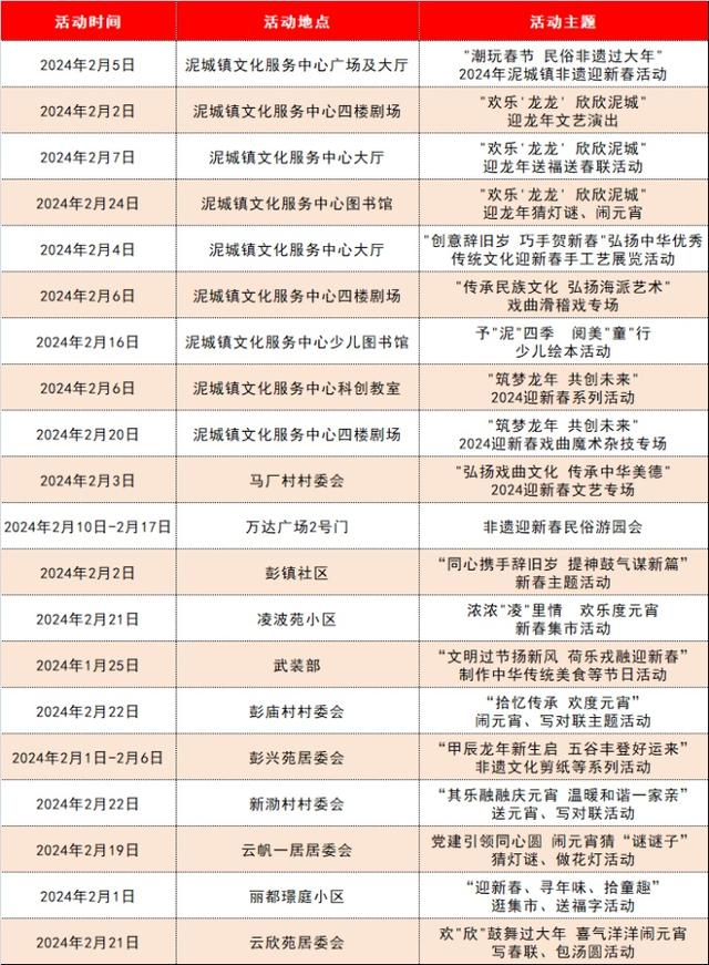 新春来临之际,泥城镇备好了“新春大礼包”,丰富多彩的春节文化活动等你来。