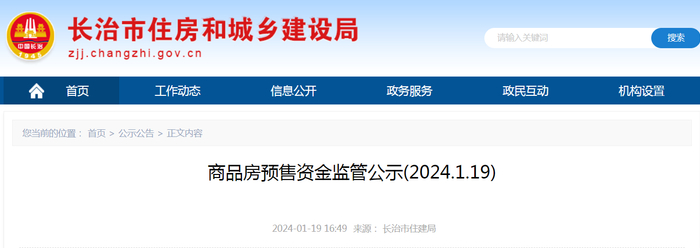 山西省长治市商品房预售资金监管公示(2024.1.19)