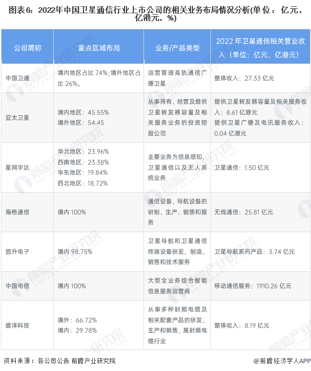 本文核心数据:卫星通信上市企业营收;卫星通信相关企业热力地图;卫星通信相关企业业务概况;卫星通信相关企业业务收入;卫星通信相关企业毛利率
