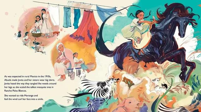 这是一本关于墨西哥革命英雄乔维塔·巴尔多维诺斯(Jovita Valdovinos)的传记绘本,讲述了她乔装成男性争取自身权利的真实故事。