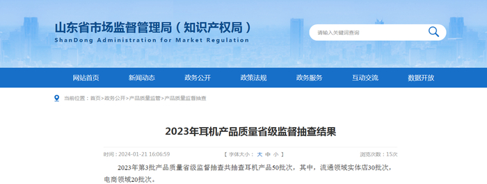 2023年第3批产品质量省级监督抽查共抽查耳机产品50批次,其中,流通领域实体店30批次,电商领域20批次。