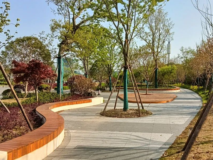 不仅如此,公园内还设有绿道和广场,为周边工作与生活的白领、居民打造了一处可在林荫下健身、游览的公共空间。