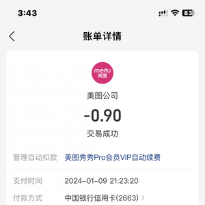 董先生告诉澎湃新闻,七天试用会员期间他仅在第一天使用过一次,“就一次,还体验不好,最后还是我用电脑做好的”。1月16日,在没有任何短信提示的情况下,他的支付宝账户忽然被扣款218元。董先生说,点进账单界面后,发现是美图秀秀会员在自动续费。