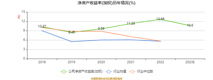 数据显示,2023年公司加权平均净资产收益率为10.6%,较上年同期下降2.06个百分点。