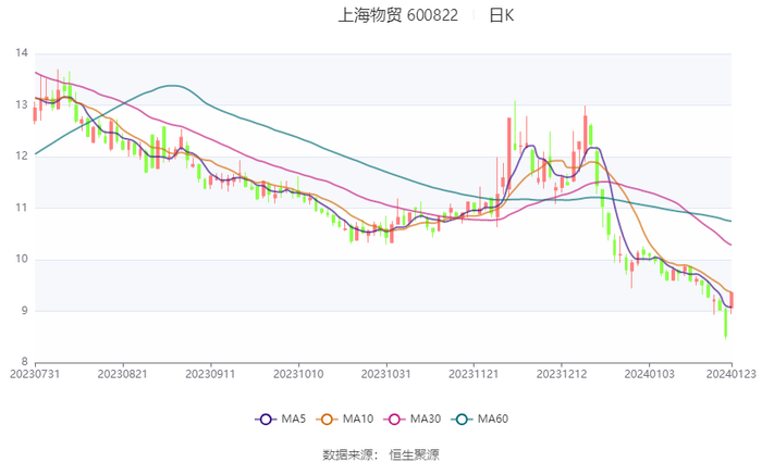 中证智能财讯 上海物贸(600822)1月23日晚间披露2023年度业绩预告,预计2023年归母净利润1.33亿元,同比增长122.11%;扣非净利润预计3564.13万元,同比增长16.42%。以1月23日收盘价计算,上海物贸目前市盈率(TTM)约为34.88倍,市净率(LF)约4.07倍,市销率(TTM)约0.69倍。