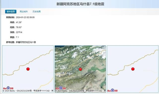 1月23日2时09分,在新疆阿克苏地区乌什县发生7.1级地震,来自国家地震台网消息,截至01月23日18时,地震后平均每12分钟就发生一次3级余震。中国地震台网中心高级工程师韩颜颜表示,这个区域属于中国构造运动较强的地区之一,平均7年左右发生一次7级以上地震,最近一次是2023年2月23日塔吉克斯坦的7.2级地震。