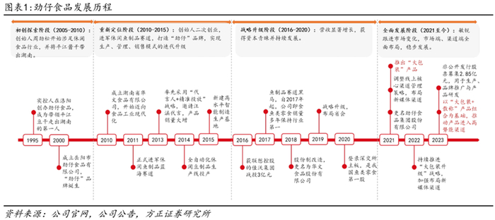 创业阶段(2000-2011年):创始人周劲松1990年踏上休闲食品创业征程,2000年创立“劲仔”品牌,2010年公司前身湖南省华文食品有限公司成立,2011年公司正式进军休闲鱼制品行业。