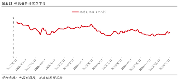 鹌鹑蛋原料价格下行,有助于盈利能力提升。供给方面鹌鹑的养殖门槛较低,既有工业化规模化养殖,普通农户在家也可养殖,叠加鹌鹑的饲养周期短,因此供给弹性较大。需求方面鹌鹑蛋既是工业食品的原材料,也是餐饮行业的重要食材,在宴席旺季时鹌鹑蛋的需求通常比较大,叠加近年来布局鹌鹑蛋休闲食品的企业增加带动需求上升,因此价格处于高位且波动较大。但随着上游鹌鹑蛋养殖水平不断提升,整体供给扩大,鹌鹑蛋价格自22年高点震荡下行,近期回落至4-5元/斤,将带动鹌鹑蛋盈利能力提升。