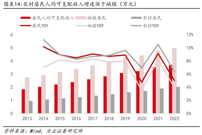 居民收入水平提升带动零食消费需求增长。2013-2022年我国居民人均可支配收入从1.83万元增长至3.69万元,CAGR为8.09%,城镇居民人均可支配收入从2.70万元增长至4.93万元,CAGR为6.93%,农村居民人均可支配收入从0.94万元增长至2.01万元,CAGR为8.79%,快于城镇居民收入增速。零食为可选消费,随着农村居民和城镇居民收入水平的快速提升,其对零食产品的需求也在迅速增加。